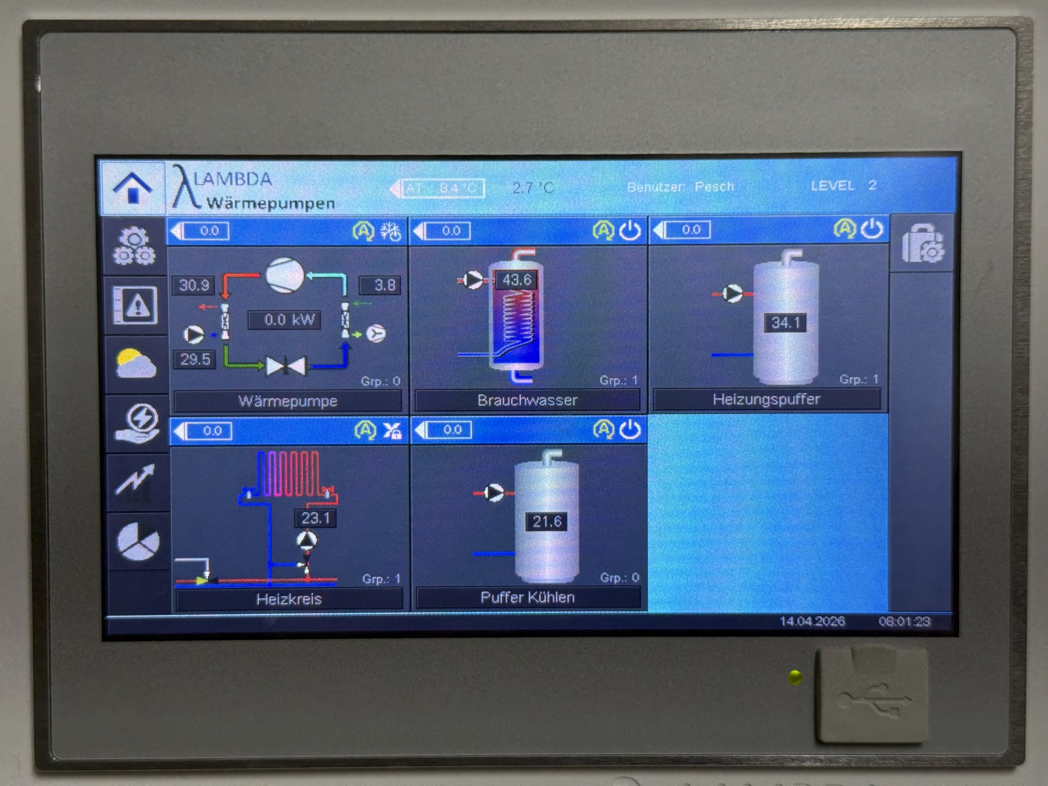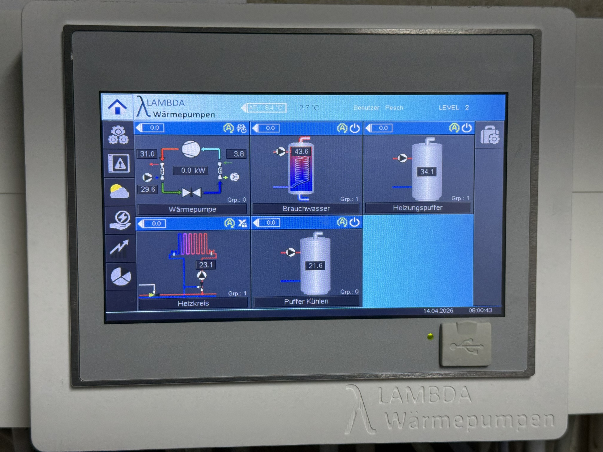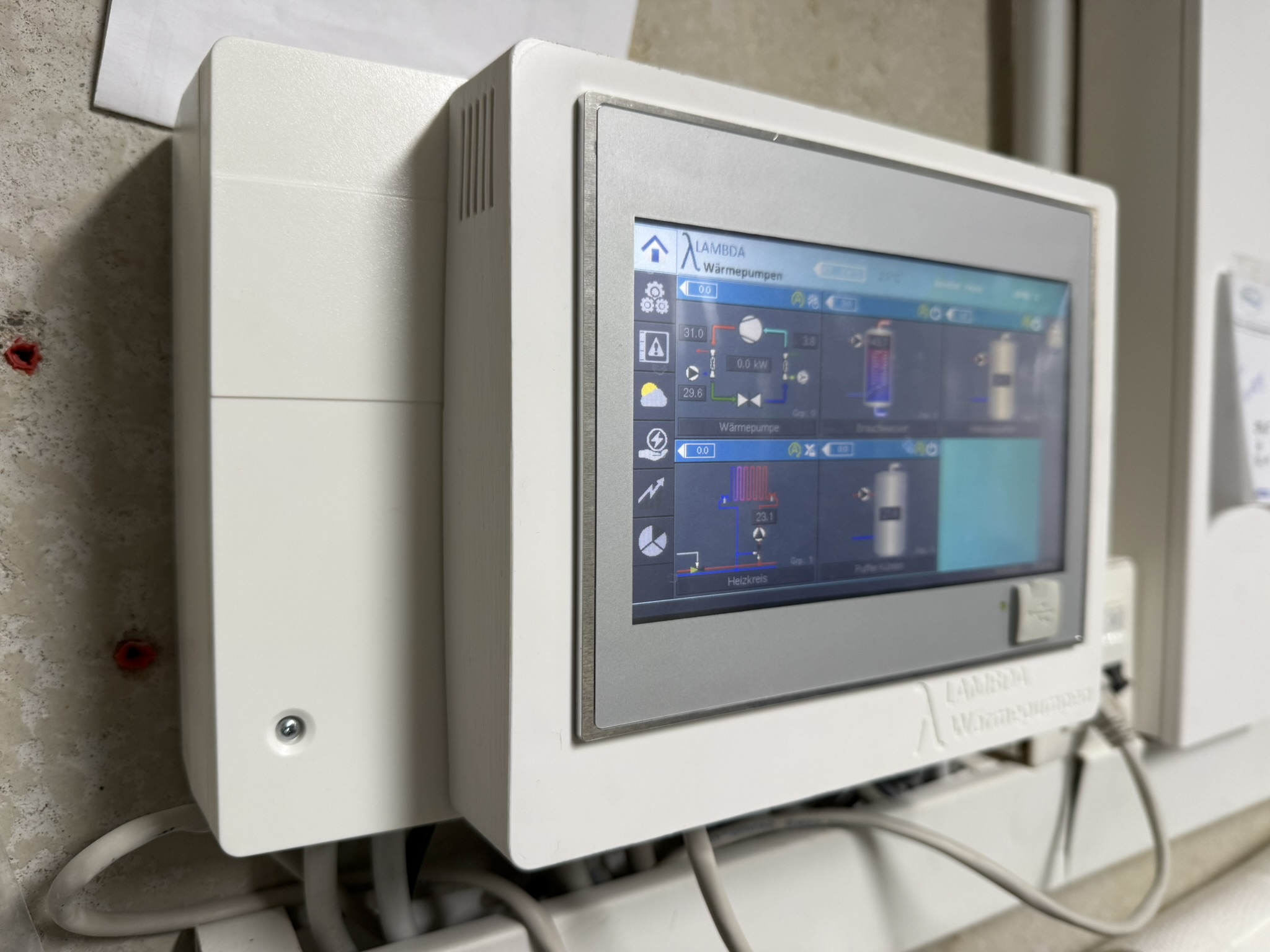 tl;dr: Gerade wurde bei uns das Display der Lambda EU08L-Wärmepumpe vom Steuerungsset 02 auf das neue Steuerungsset 03 getauscht. Die Hardware ist ein deutlicher Sprung – kapazitives Glas-Display, höhere Auflösung, spürbar schnellere Reaktionszeiten. Der Upgrade-Prozess selbst ist allerdings alles andere als komfortabel: Sämtliche Einstellungen gehen verloren und müssen manuell neu eingegeben werden. Kostenpunkt: bei uns rund 930 € inkl. allem – der Preis hängt vom jeweiligen Installateur ab.
