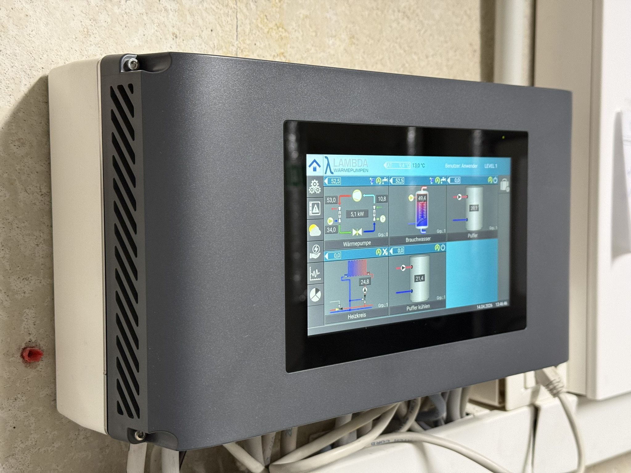 Ehrlich gesagt spielt das physische Display bei uns im Alltag eine eher untergeordnete Rolle. Beide Steuerungssets – das alte wie das neue – lassen sich über Lambdas »Connected Heat« komplett per Web-Oberfläche bedienen. Ich steuere unsere Lambda fast ausschließlich darüber. Zusätzlich bieten beide Steuerungen auch einen lokalen VNC-Zugang, der nicht groß beworben wird, allerdings zuverlässig funktioniert – auch hier großes Lob an Lambda. Das Display selbst kommt bei mir eigentlich nur zum Einsatz, wenn ich direkt im Keller stehe.